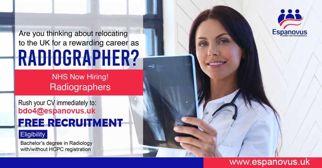ലണ്ടന്‍: യുകെ സര്‍ക്കാരിന്റെ നാഷണല്‍ ഹെല്‍ത് സര്‍വീസി(എന്‍എച്എസ്)ന് കീഴില്‍ പ്രവര്‍ത്തിക്കുന്ന വിവിധ ആശുപത്രികളിലേക്ക് റേഡിയോഗ്രാഫര്‍ തസ്തികയിലേക്ക് അപേക്ഷ ക്ഷണിച്ചു. റിക്രൂട്‌മെന്റ് പൂര്‍ണമായും സൗജന്യമാണ്. തെരഞ്ഞെടുക്കുന്ന ഉദ്യോഗാര്‍ത്ഥികള്‍ക്ക് വിമാന ടിക്കറ്റ് ഉള്‍പ്പെടെ മുഴുവന്‍ ചെലവും നിയമനം നല്‍കുന്ന സ്ഥാപനം വഹിക്കും. റിക്രൂടിംഗ് ഏജന്‍സിക്ക് സര്‍വീസ് ചാര്‍ജ് നല്‍കാനുളള ഉത്തരവാദിത്തവും നിയമന അധികാരിക്കള്‍ക്കാണ്.