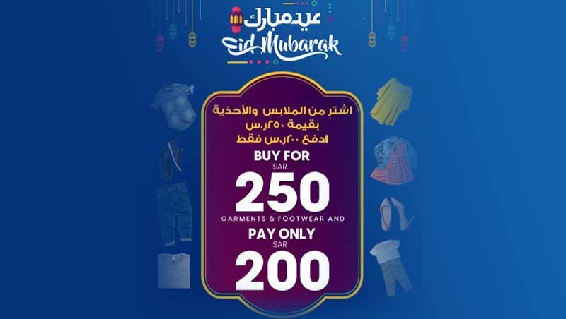 ഗാര്മെന്റ്സ്, ഫുട്വെയര് വിഭാഗങ്ങളില് വിവിധ രാജ്യങ്ങളില് നിന്ന് ഇറക്കുമതി ചെയ്ത ജെന്റ്സ്, ലേഡീസ്, കിഡ്സ് ഉത്പ്പന്നങ്ങളും വിവിധ ആക്സസറീസും ഒരുക്കിയിട്ടുണ്ട്. 29 റിയാല് വിലയുളള ഹെംലെറ്റ് കാഷ്വല് ഷര്ട്ട് രണ്ടെണ്ണം 49 റിയാലിന് ലഭിക്കും. ഇതേ ബ്രാന്റിലുളള ജീന്സും ഇതേ ഓഫറില് ലഭ്യമാണ്.