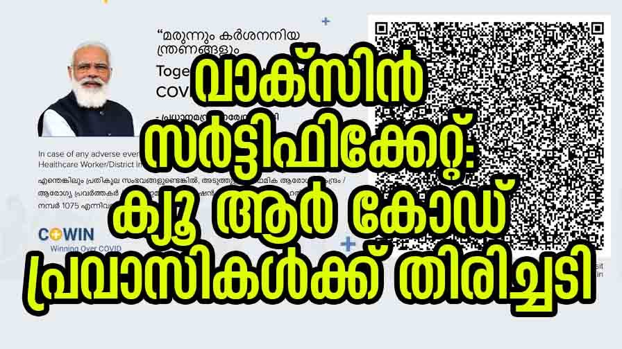 റിയാദ്: കൊവിഡ് വാക്സിന് സ്വീകരിച്ചവര്ക്ക് ഇന്ത്യാ സര്ക്കാര് വിതരണം ചെയ്യുന്ന കൊവിഡ് സര്ട്ടിഫിക്കേറ്റിലെ സെക്യുര് ക്യൂ ആര് കോഡ് പ്രവാസികള്ക്ക് തിരിച്ചടി യാകുന്നു. കേന്ദ്ര സര്ക്കാര് നിര്ദേശിക്കുന്ന വെബ്സൈറ്റ് സന്ദര്ശിച്ച് ക്യൂ ആര് കോഡ് പരിശോധിക്കണം. സുരക്ഷ മുന്നിര്ത്തിയാണ് ഇന്ത്യ വിതരണം ചെയ്യുന്ന സര്ട്ടിഫിക്കേറ്റില് സെക്യുര് ക്യൂ ആര് കോഡ് രേഖപ്പെടുത്തുന്നത്. ക്യൂ ആര് കോഡ് റീഡ് ചെയ്യാന് അധിക പ്രയത്നം ആവശ്യമായി വന്നതോടെ സൗദി, കുവൈത്ത് ആരോഗ്യ മന്ത്രാലയങ്ങളില് ഇന്ത്യക്കാര് സമര്പ്പിക്കുന്ന സര്ട്ടിഫിക്കേറ്റുകള് അംഗീകരിക്കുന്നില്ല.
