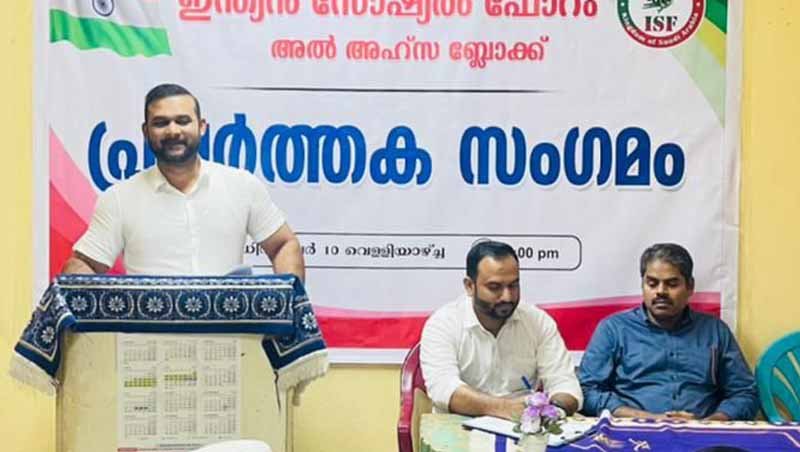 ഇന്ത്യന് സോഷ്യല്ഫോറം ദമ്മാം കേരള സ്റ്റേറ്റ് പ്രസിഡന്റ് പികെ മന്സൂര് എടക്കാട് മുഖ്യപ്രഭാഷണം നിര്വഹിച്ചു. ബ്ലോക്ക് തലത്തില് നടത്തിയ വെല്ഫെയര് പ്രവര്ത്തനങ്ങള് കൂടുതല് പ്രവാസ സമൂഹത്തിലേക്കു കടന്നുചെല്ലാന് സാദിച്ചിട്ടുണ്ടെന്നും തുടര്ന്നും നല്ല പ്രവര്ത്തനങ്ങള് കാഴ്ചവെക്കാന് സഹപ്രവര്ത്തകര് മുന്നോട്ട് വരണമെന്നും വെല്ഫയര് ഇന്ചാര്ജ് സുജി അബ്ദുല്റഹ്മാന് ആശംസാ പ്രസംഗത്തില് പറഞ്ഞു. അല് അഹ്സ ബ്ലോക്ക് പ്രസിഡന്റ് മുസ്തഫ പട്ടാമ്പി, മീഡിയ ഇന്ചാര്ജ് നിസാം കരുനാഗപ്പള്ളി എന്നിവര് പ്രസംഗിച്ചു വൈസ് പ്രസിഡന്റ് റിയാസ് മൗലവി നന്ദി പറഞ്ഞു.
