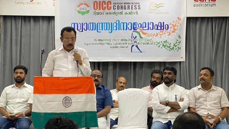 റിയാദ്: ഒഐസിസി റിയാദ് സെന്‍ട്രല്‍ കമ്മറ്റി ഇന്ത്യയുടെ എഴുപത്തി അഞ്ചാമത് സ്വാതന്ത്രദിനം സഘോഷിച്ചു. ബത്ഹ ലുഹ ഓഡിറ്റോറിയത്തില്‍ നടന്ന ചടങ്ങില്‍ സെന്‍ട്രല്‍ കമ്മറ്റി ആക്റ്റിങ് പ്രസിഡന്റ് മുഹമ്മദലി മണ്ണാര്‍ക്കാട് അദ്യക്ഷത വഹിച്ചു. കിംഗ് ഫഹദ് മെഡിക്കല്‍ സിറ്റിയിലെ ഡോ. ഷൈന്‍ ഉദ്ഘാടനം ചെയ്തു. സ്വാതന്ത്രദിനം ആരും ദാനം തന്നതല്ലെന്നും ഇന്ത്യന്‍ നാഷണല്‍ കോണ്‍ഗ്രസിന്റെ നേതൃത്വത്തില്‍ നിരവധി പോരാട്ടങ്ങളിലൂടേയും ധീര ദേശാഭിമാനികളകള്‍ ജീവന്‍ ബലി അര്‍പ്പിച്ചും നേടിയതാണെന്ന് പരിപാടിയില്‍ പങ്കെടുത്തവര്‍ പറഞ്ഞു. സ്വാതന്ത്ര സമരവും അതിന് നേതൃത്വം നല്‍കിയ ധീര ദേശാഭിമാനികളെ പുതു തലമുറക്ക് ശരിയായ ചരിത്രം പകര്‍ന്ന് നല്‍കാന്‍ പ്രവാസ ലോകത്ത് ഒഐസിസി നേതൃത്വം നല്‍കണമെന്നും ചടങ്ങില്‍ പ്രസംഗിച്ചവര്‍ പറഞ്ഞു.