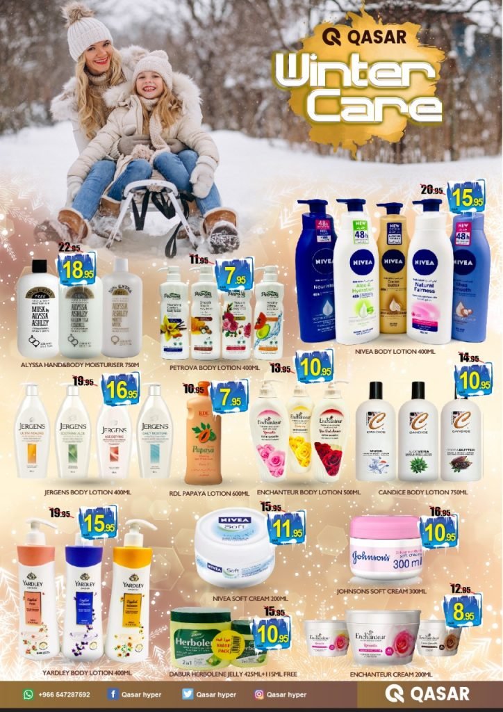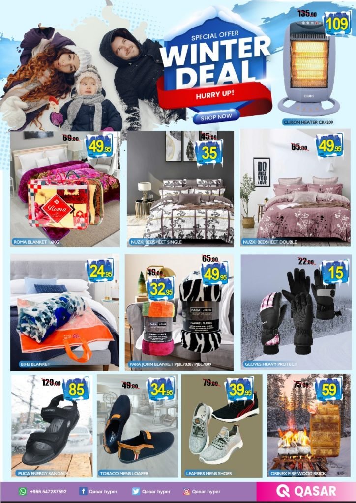 റിയാദ്: ശിശിര കാലം ഉത്സവമാക്കാനൊരുങ്ങി ഖസര് ഹൈപ്പര്മാര്ക്കറ്റ് വിന്റര് ഡീല് സ്പെഷ്യല് പ്രൊമോഷന് ആരംഭിച്ചു. ശീത കാലത്ത് ദൈനംദിന ആവശ്യങ്ങള്ക്കുളള പ്രതിരോധ വസ്ത്രങ്ങള്, ഹീറ്റര്, ചര്മ പരിചരണ ഉത്പന്നങ്ങള്, കോഫി എന്നിവയുടെ വിപുലമായ ശേഖരം വിന്റര് ഡീലിന്റെ പ്രത്യേകതയാണ്. ഇതിന് പുറമെ വെജിറ്റിള്, ഫീഷ്, മീറ്റ്, ഗ്രോസറി, ഇലക്ട്രോണിക്സ്, ഇലക്ട്രിക്കല്സ്, സ്വീറ്റ്സ്, ഗൃഹോപകരണങ്ങള് തുടങ്ങി എല്ലാ ഡിപ്പാര്ട്മെന്റിലും ആകര്ഷകമായ വിലക്കിഴിവും പ്രഖ്യാപിച്ചിട്ടുണ്ട്.