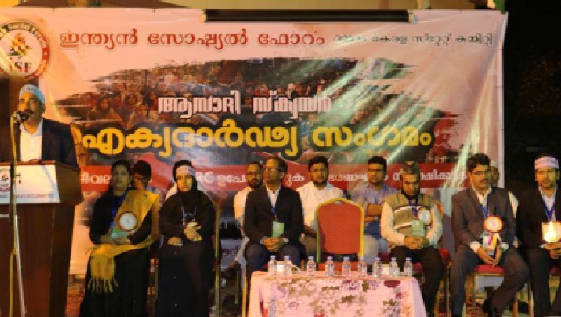 രാത്രി 7.30ന് നടന്ന ‘ഐക്യദാര്‍ഢ്യ സമ്മേളനം’ എസ്.ഡി.പി.ഐ സംസ്ഥാന ജനറല്‍ സെക്രട്ടറി തുളസീധരന്‍ പള്ളിക്കല്‍ വീഡിയോ കോണ്‍ഫറന്‍സ് വഴി ഉദ്ഘാടനം ചെയ്തു. സ്റ്റുഡന്റ് ആക്ടിവിസ്റ്റ് ടി ആദിലയുടെ വീഡിയോ സന്ദേശം പ്രദര്‍ശിപ്പിച്ചു. ഇന്ത്യന്‍ സോഷ്യല്‍ ഫോറം ദമ്മാം കേരള സ്‌റ്റേറ്റ് കമ്മിറ്റി പ്രസിഡന്റ് നാസര്‍ കൊടുവള്ളി അധ്യക്ഷത വഹിച്ചു. സ്‌റ്റേറ്റ് കമ്മിറ്റി അംഗം റഹീം വടകര മുഖ്യ പ്രഭാഷണം നടത്തി. പശുവിന്റെ പേരിലുള്ള തല്ലിക്കൊലകള്‍, എന്‍.ഐ.എ, യു.എ.പി.എ ഭേദഗതി, മുത്തലാഖ് ബില്‍, കാശമീറിന്റെ 370 വകുപ്പ് റദ്ദാക്കല്‍, ബാബരി മസ്ജിദ് വിധി തുടങ്ങി വിവിധ വിഷയങ്ങളില്‍ പ്രതിപക്ഷ പാര്‍ട്ടികളുടെ നിസംഗതയും ഭിന്നിപ്പുമാണ് ഇത്തരം വര്‍ഗ്ഗീയ നിയമങ്ങള്‍ രാജ്യത്ത് നടപ്പിലാക്കാന്‍ മോദി സര്‍ക്കാറിന് ധൈര്യം പകര്‍ന്നതെന്ന് അദ്ദേഹം പറഞ്ഞു.